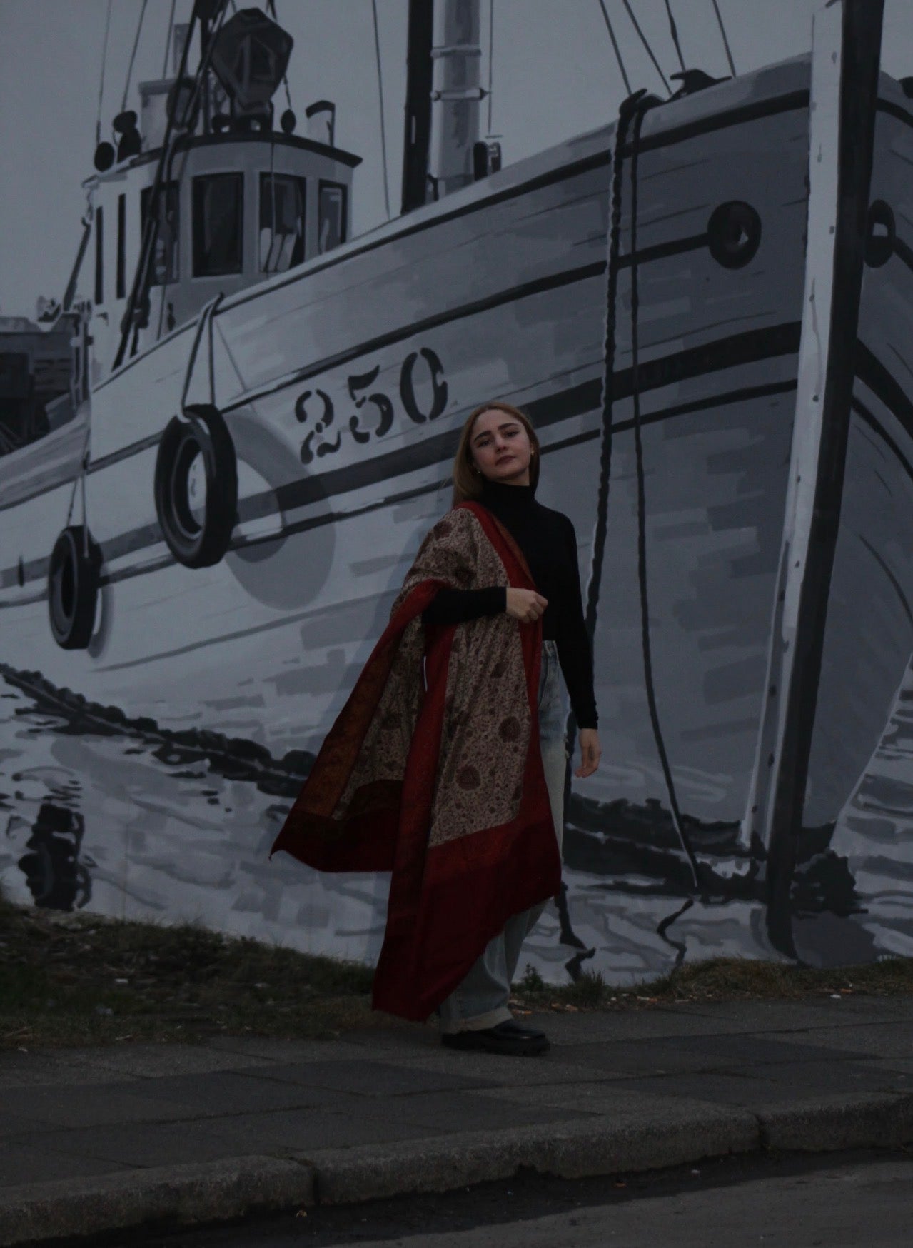 Woven from a soft wool-rich blend, the shawl is lightweight yet insulating, making it comfortable to wear across cooler seasons. The generous size allows for versatile styling—draped over the shoulders, wrapped as a scarf, or layered as a statement piece.